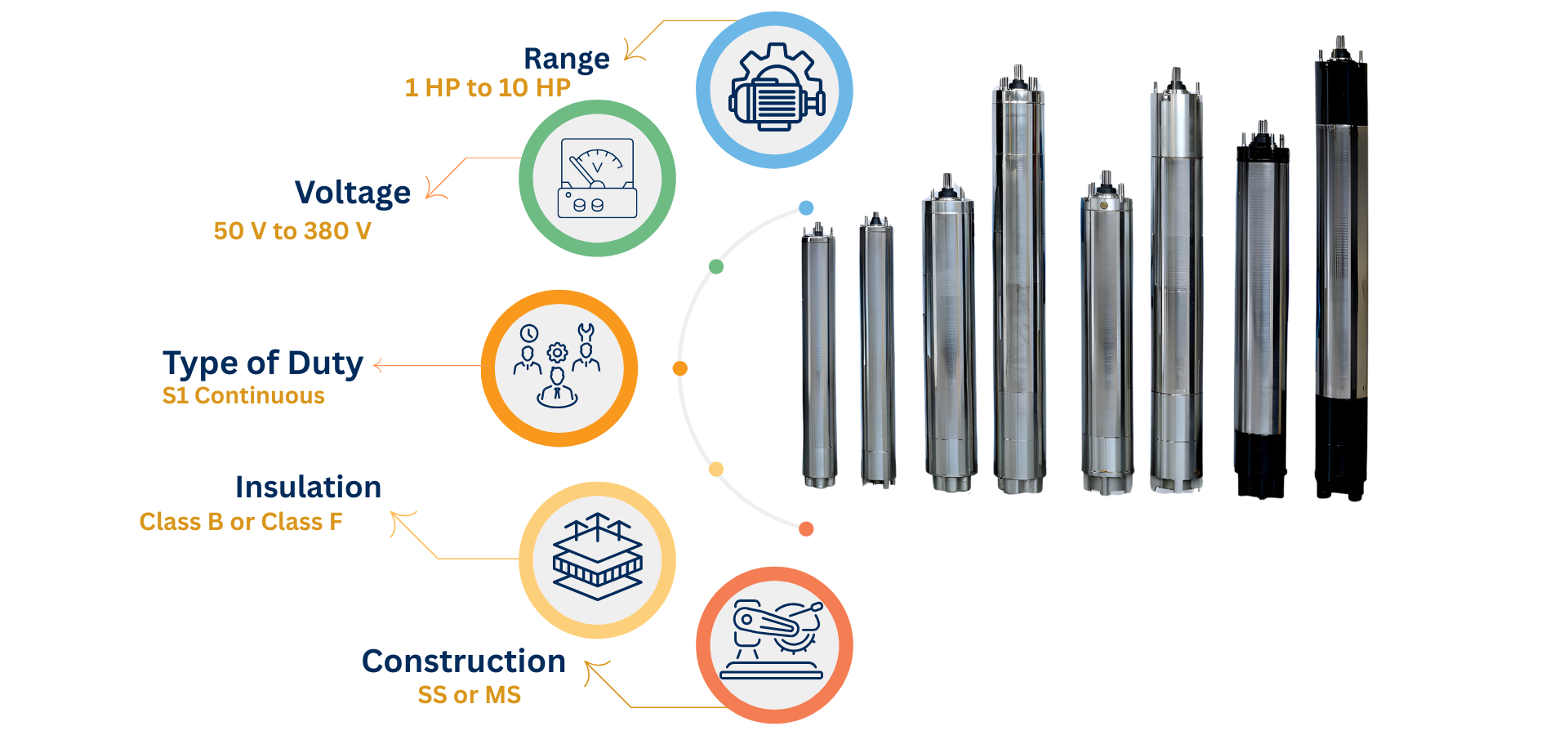 Our solar pump motors are designed to lift water from wells, boreholes or tanks. Submersible and surface pumping systems with DC and AC motor provides an energy efficient solution for durable operation. Unique design of motors can drive any brand of pump used in agricultural irrigation, industrial processes, commercial facilities, and residential water supply. High quality raw material are competent to resists all environment and operational corrosion, thrust, wear and tear, ageing and abrasion occurring over the period of time. These motors, with excellent performance and trouble-free operation at reasonable price are a value for money solution for pumping application.
